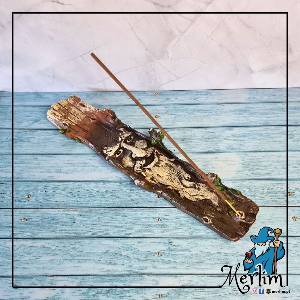 Porta incenso (ou queimador de incenso) com Homem Verde em resina. Este é um queimador de incenso para aqueles que apreciam Lobos e Incensos, pois junta um Lobo branco e uma base para queimar o incenso na horizontal.