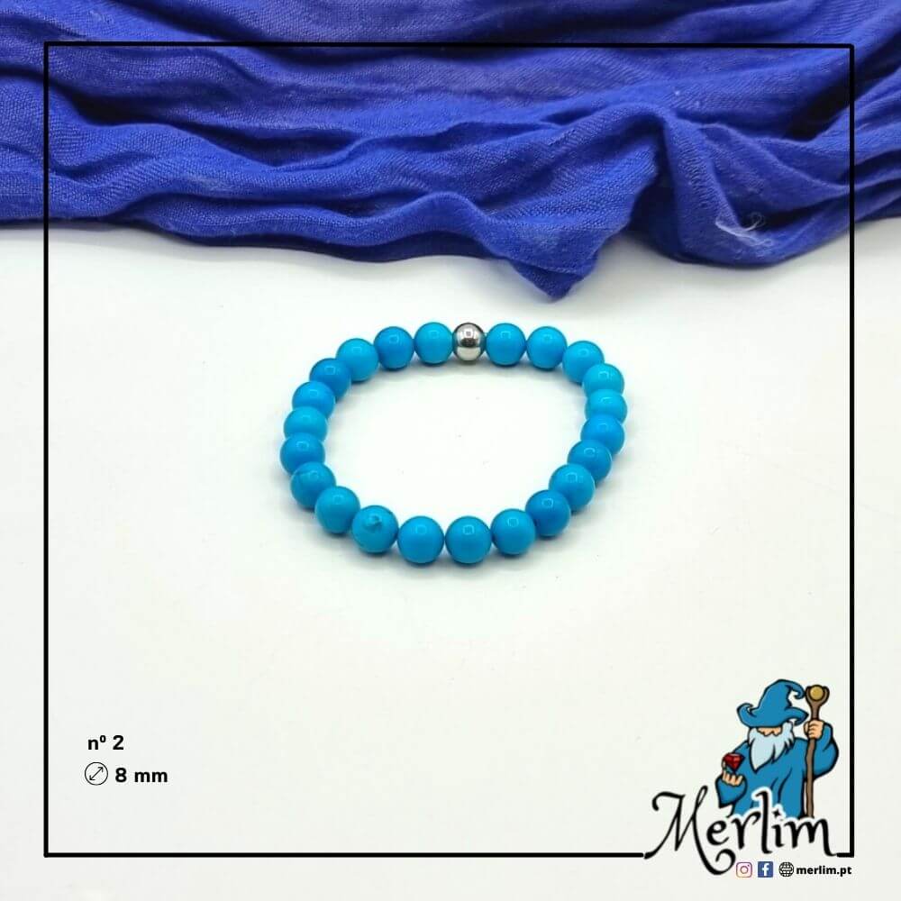 - Pode escolher entre a Pulseira do signo aquário (turquenite) com pedra de 6 mm de diâmetro ou de 8 mm.